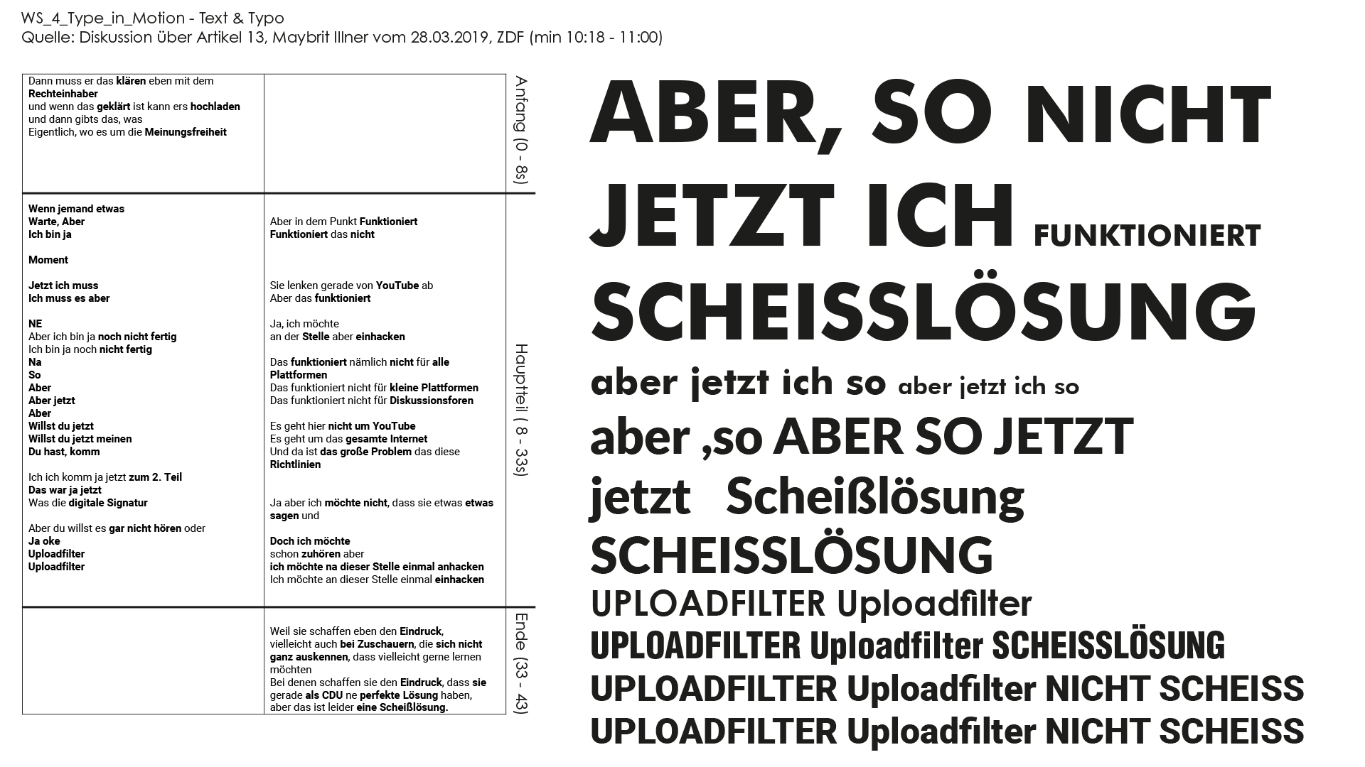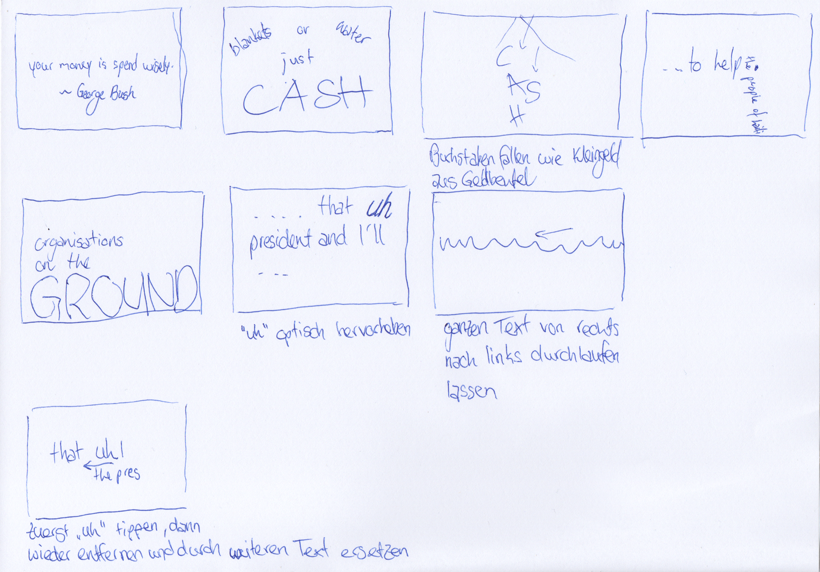 Alles, worüber Obama erzählt, definieren die Erlebnisse von Frau Cooper. Die gesprochenen Worte (und somit die typografischen Mittel) können so aufgebaut werden, dass zum Ende die Form eines menschlichen Körpers entsteht, welcher sie repräsentieren soll.